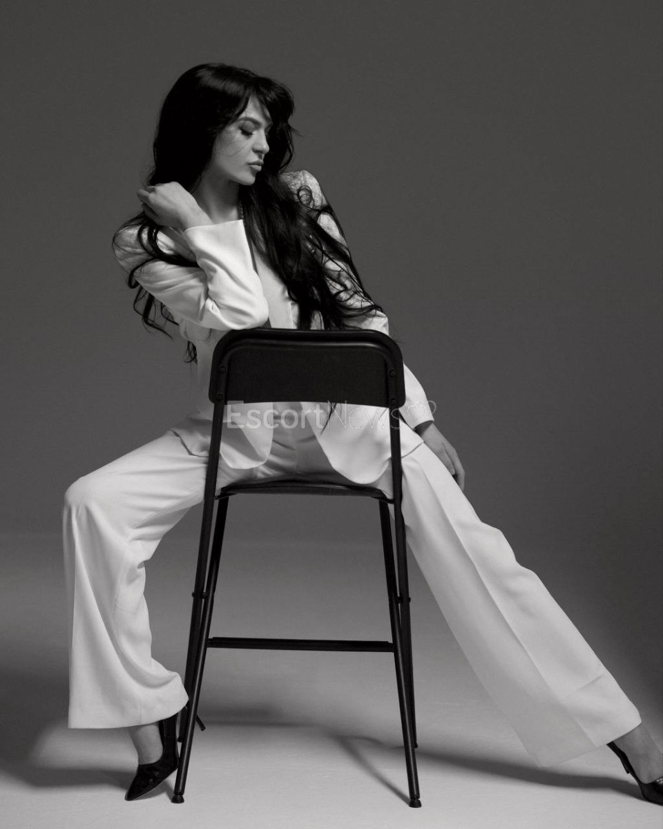 This captivating woman radiates confidence and allure in every move. Her dark hair contrasts beautifully with her striking blue eyes, creating a mysterious, magnetic look that instantly captures attention. With a toned silhouette and feminine curves, she embodies elegance and passion. Intelligent, sensual, and playful, she knows how to create an atmosphere of comfort and desire. Whether you seek gentle romance or fiery energy, her presence will leave you entranced — a rare combination of natural charm, sophistication, and irresistible seduction.